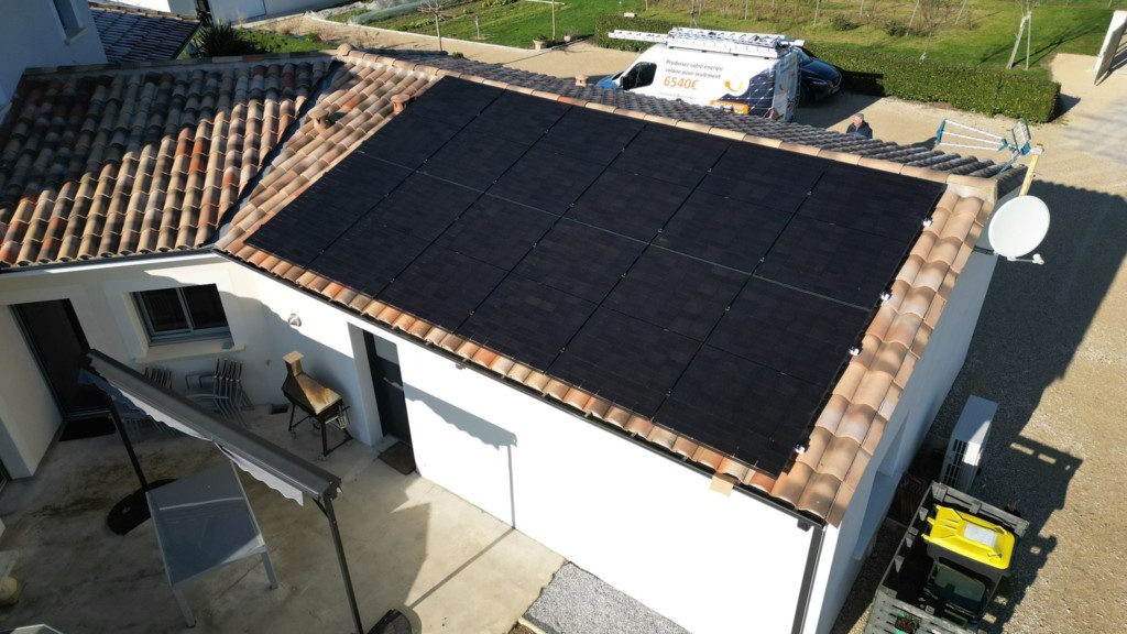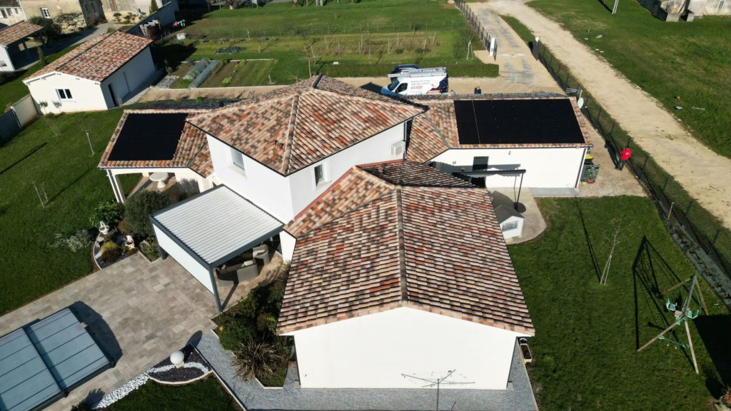 Puissance de 9KWC composée de 18 panneaux Dualsun 500W TOPcon bi-verre et bi-facial couplés à des micro-onduleurs Enphase IQ8P en autoconsommation avec revente du surplus